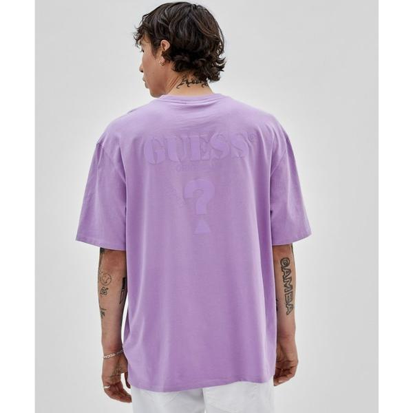 バックに同色系であしらわれた発砲プリント×胸元のレクタングルタグがアクセントのTシャツ。