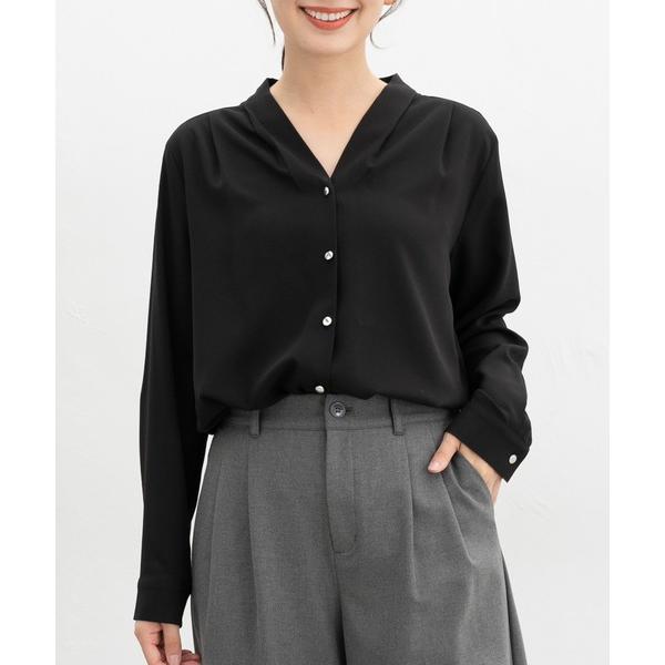 Vネックデザインで、首元をスッキリと見せてくれるブラウス。