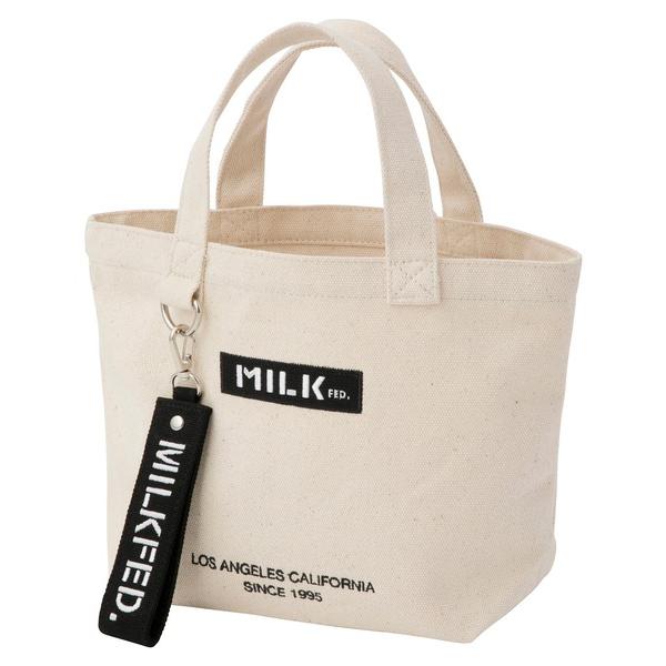 ナチュラルなキャンバスにロゴデザインが光るシンプルなミニトート。