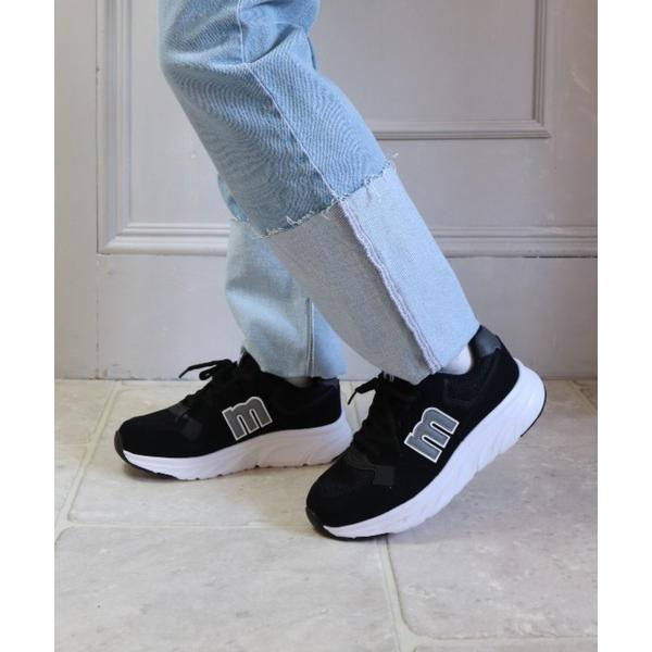 サイドのmロゴがポイントになったシンプルなスニーカー。どんなスタイルにも合わせやすい!
