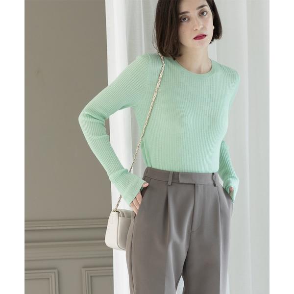 ほんのりとした透け感が今っぽい、大人っぽく着られるクルーネックシアーニット。