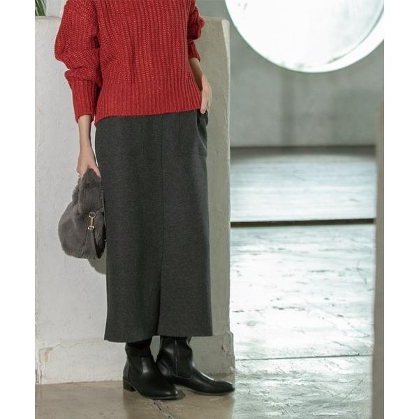このスカートはストレッチが効いていてウールライクな生地感なので、