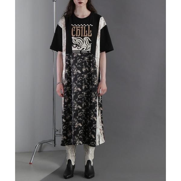 テイストの違うプリント素材同士をパネル状にドッキングしたリメイク風グラフィックワンピース!