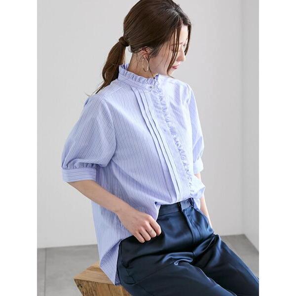 パールボタン×フリルデザインの大人可愛いブラウスです。
