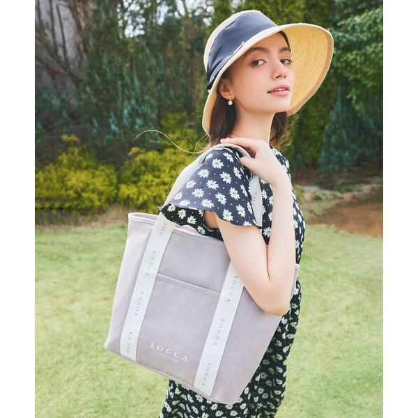 グログランリボンにロゴがデザインされたおしゃれなトートバッグ。
